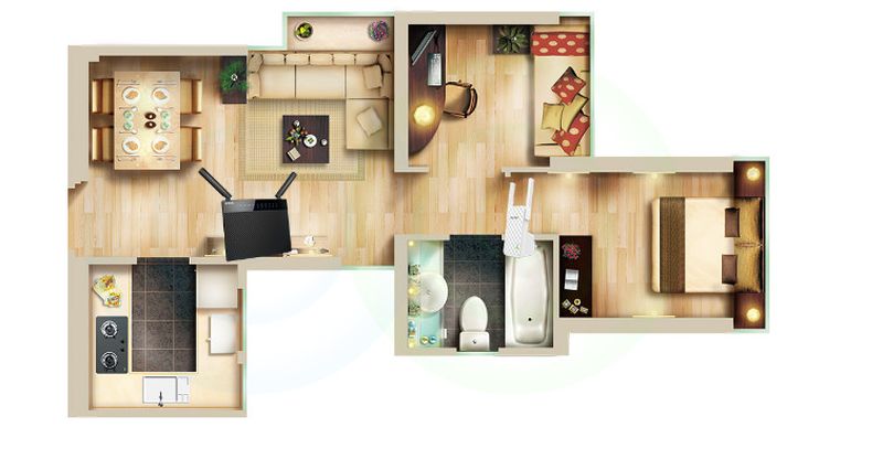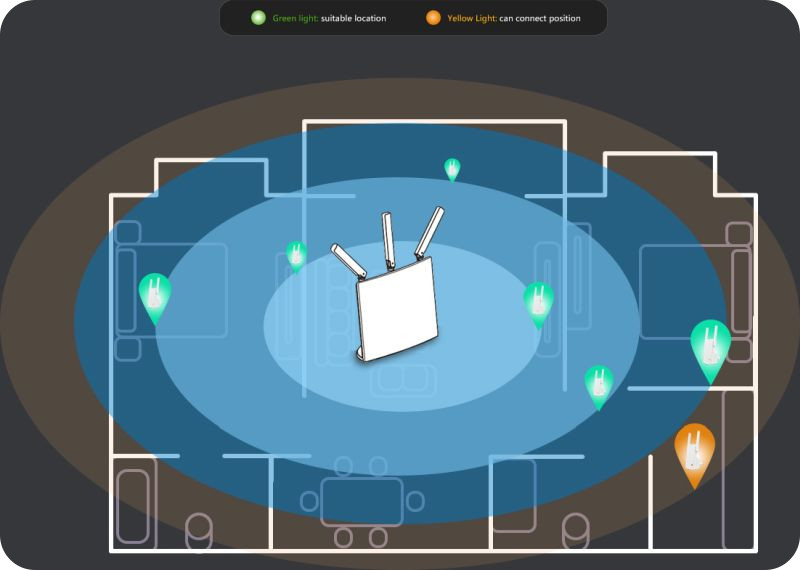 Dla dużych mieszkań z wieloma pokojami, jeden router może nie dostarczyć wszędzie sygnału, przez co pojawiają się martwe punkty bez dostępu do sieci. W prosty sposób można rozwiązać ten problem, umieszczając A9 w odpowiednim miejscu, zgodnie ze świecącą się diodą LED (powinna ona być zielona), aby zwiększyć zasięg sieci na całe mieszkanie.