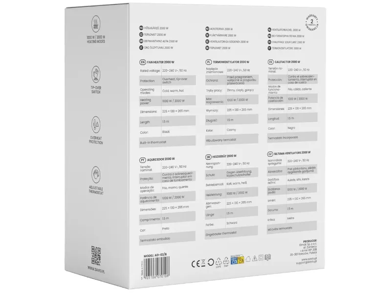 Termowentylator 2000 W biały SAVIO AD-02/W