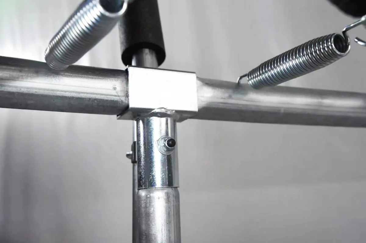 Bezpieczeństwo zabawy zapewnia piankowa osłona na sprężyny i słupki wykonana z PE. Nogi w układzie U nadają dodatkowo sztywności całej konstrukcji i jednocześnie zapewniają stabilne podparcie dla batuty. Nogi trzymające siatkę posiadają kołnierze z grubej gąbki co dodatkowo podnosi standard bezpieczeństwa osób korzystających z trampoliny.Materiały użyte do trampoliny są odporne na działanie warunków atmosferycznych i bedą zapewniać bezproblemową eksploatację urządzenia przez wiele lat.