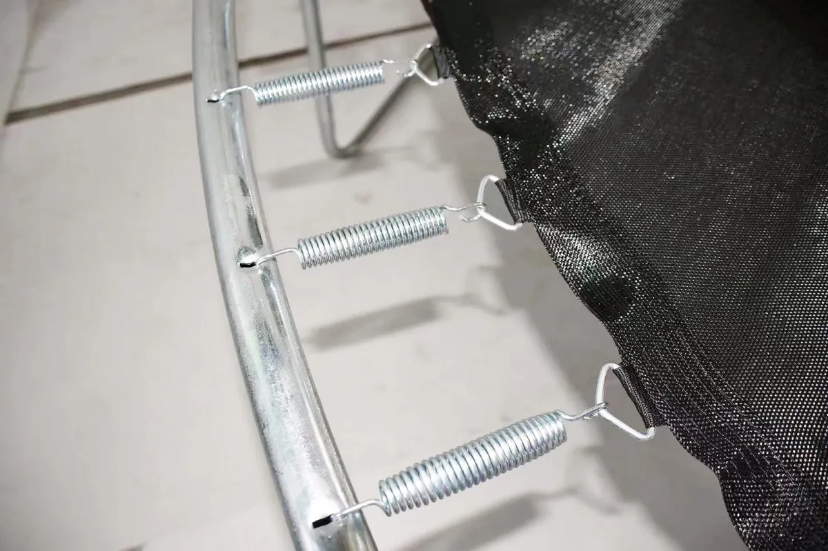 Trampolina TESORO wykonana z wytrzymałej stalowej konstrukcji odporna na odkształcenia -taka konstrukcja pozwoli na wieloletnie bezpieczne użytkowanie. Wszystkie elementy stelaża są galwanizowane wewnątrz i na zewnątrz. Wszystkie elementy stalowe zostały wyprofilowane w taki sposób aby konstrukcja była bardzo sztywna oraz prosta w składaniu (nie wymaga narzędzi). Batuta wykonana z bardzo gęstego i elastycznego materiału, dodatkowo zabezpieczona przed działaniem promieni UV. Osłona idealnie przykrywa sprężyny, chroni skaczące dziecko tak, by delikatna stopa nie dostała się pomiędzy. Mata jest naciągnięta za pomocą 42 sprężyn o podwyższonej twardości. Aby wszystko sprawnie zamontować wystarczy użyć specjalnego klucza do naciągu sprężyn, który jest w zestawie wraz z trampoliną.