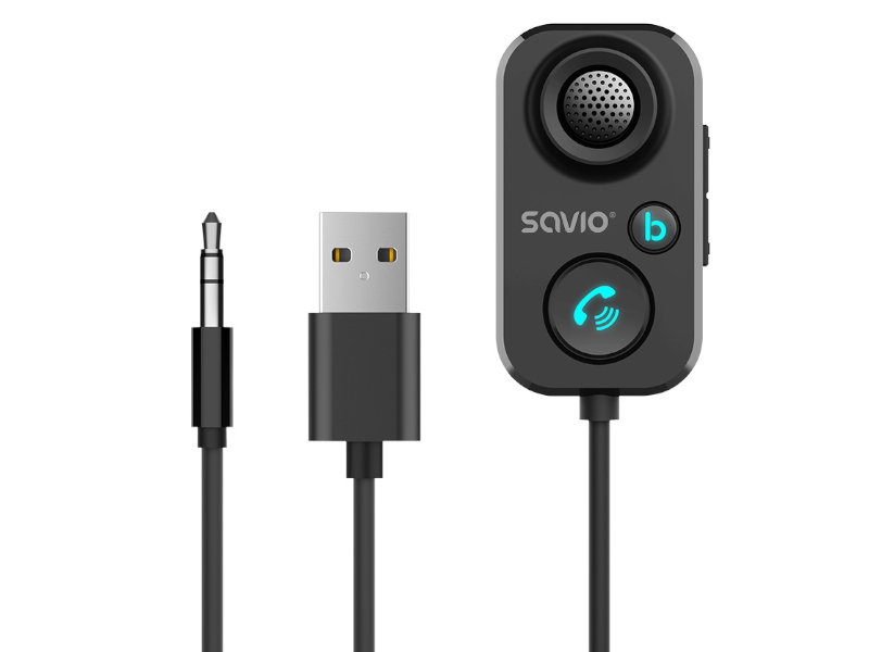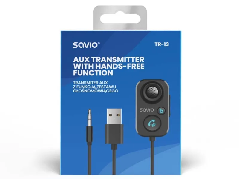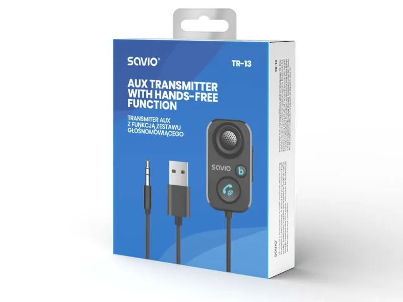 - Transmiter AUX z funkcją zestawu głośnomówiącego SAVIO TR-13 to wielofunkcyjne urządzenie wyposażone w Bluetooth 5.1.