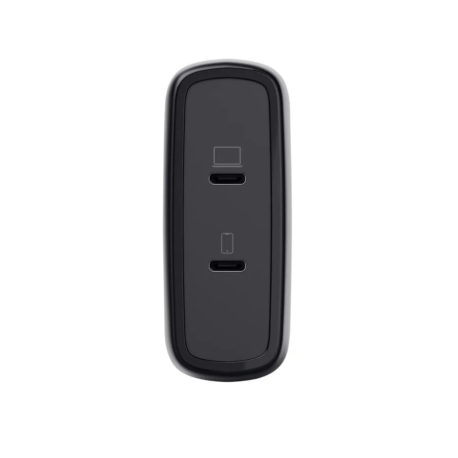Nie musisz wybierać, które z urządzeń naładować ta wydajna ładowarka ma dwa porty USB-C, co oznacza, że możesz szybko i wygodnie naładować swój telefon lub tablet oraz laptopa* jednocześnie. Wygodne ładowanie w kompaktowej formie! *Zapoznaj się z danymi technicznymi laptopa, aby dowiedzieć się więcej o kompatybilności.