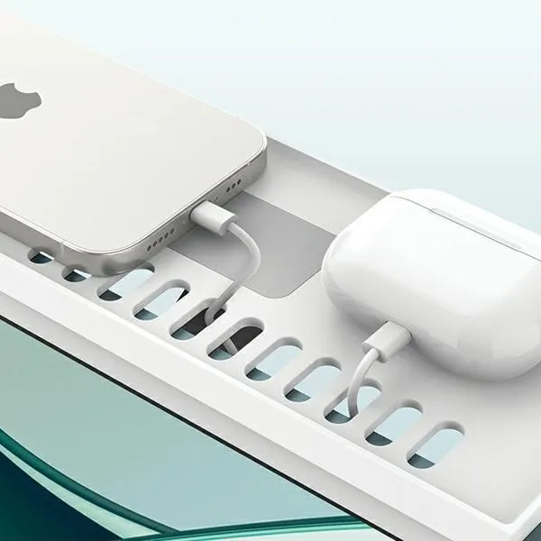 - Zarządzanie kablami: Specjalne wycięcia w tylnej części umożliwiają estetyczne i wygodne przeprowadzenie kabli do ładowania smartfonów, słuchawek czy zegarków.