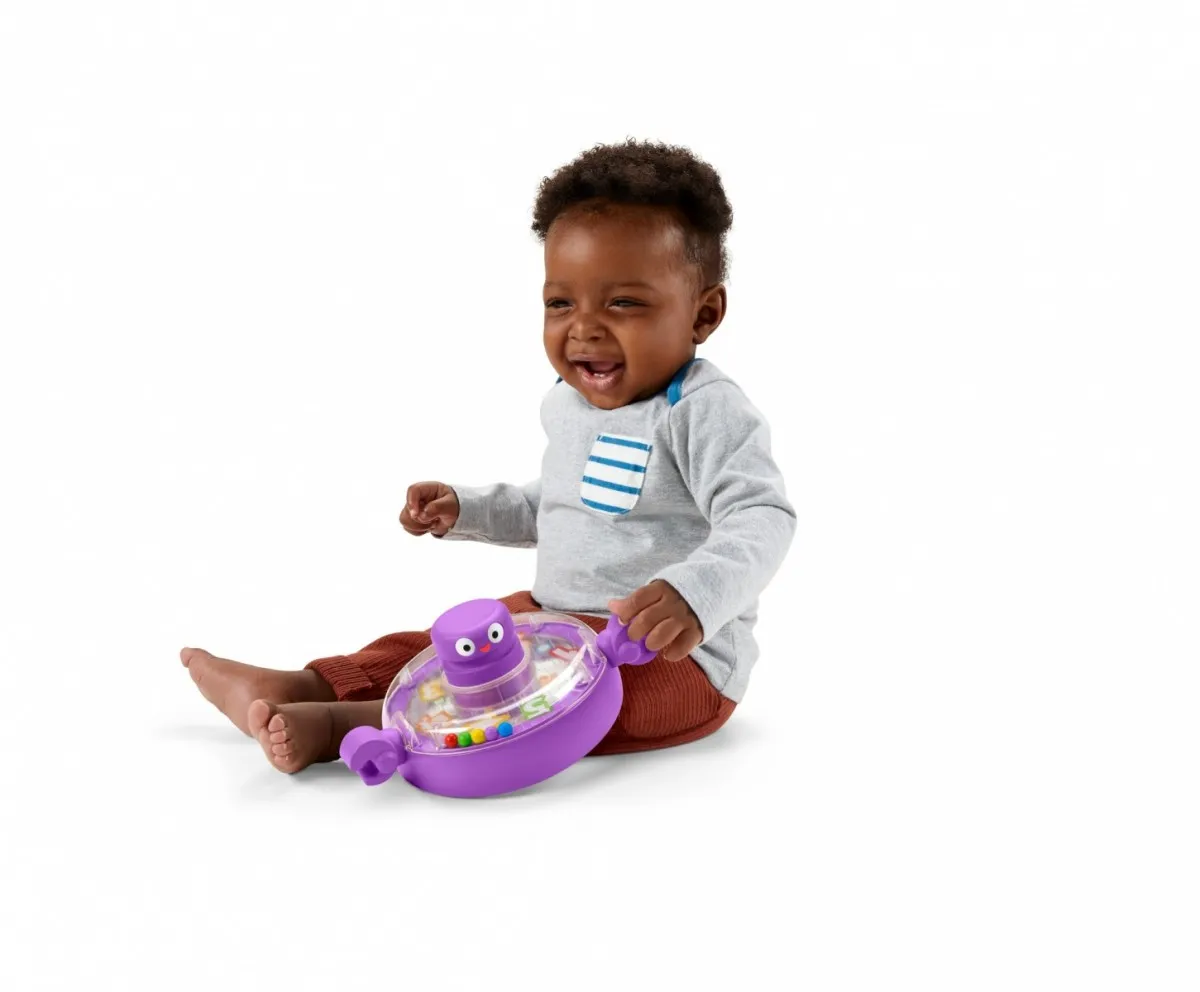 - Mnóstwo aktywizującej zabawy na siedząco: antena do naciskania, uszko do przekręcenia, klapka do odwracania i kołysząca się podstawa do trącania z kolorowymi kuleczkami w środku.