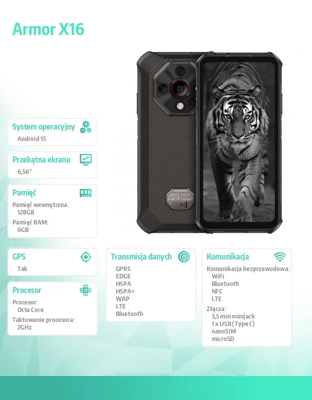ULEFONE Smartfon Armor X16 4G 6/128GB IP69K czarny