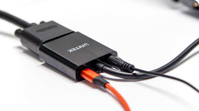 Umożliwia podłączenie monitora czy projektora ze złączem VGA do dowolnego urządzenia wyposażonego w złącze HDMI np. laptopa. Przejściówka obsługuje rozdzielczości aż do Full HD 1920x1080, dzięki dużej przepustowości i zgodności ze standardem. Ponadto, przejściówka została wyposażona w wyjście audio przez port 3.5mm miniJack, a do zestawu dołączony jest odpowiednio długi kabel audio. Adapter samodzielnie rozdziela sygnał, a do prawidłowej pracy potrzebuje czasem dodatkowego zasilania, do tego też celu służy dodatkowy port microUSB.