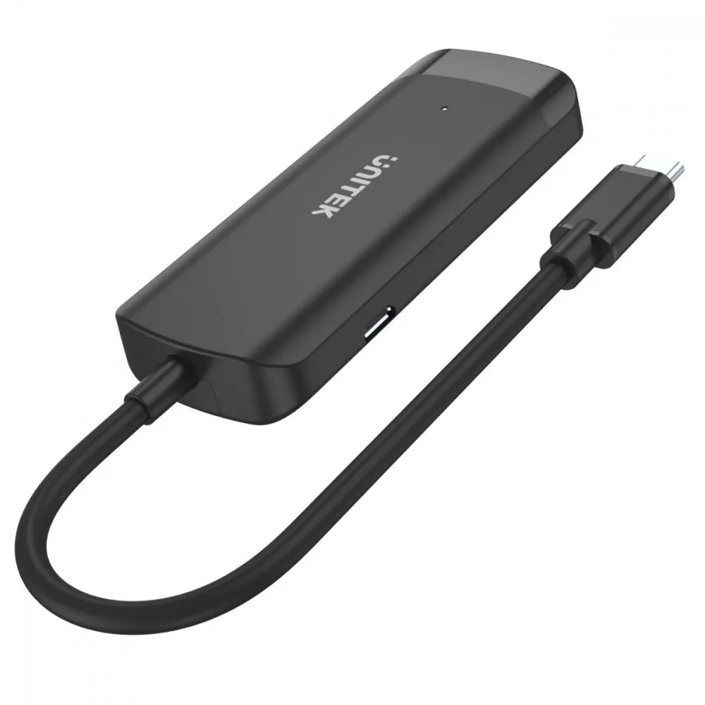 Podłącz dodatkowe urządzenia do portu USB-C w laptopie. Aktywny hub USB Unitek rozszerzy możliwości Twojego laptopa o trzy dodatkowe porty USB i jeden port RJ-45 Ethernet.