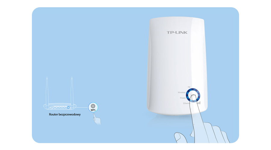 Użytkownicy mogą łatwo zwiększyć zasięg sieci bezprzewodowej, bez użycia żadnych dodatkowych kabli, poprzez umieszczenie urządzenia w zasięgu istniejącej sieci bezprzewodowej. Wystarczy tylko nacisnąć przycisk WPS na routerze a następnie przycisk Range Extender na wzmacniaczu (w dowolnej kolejności).