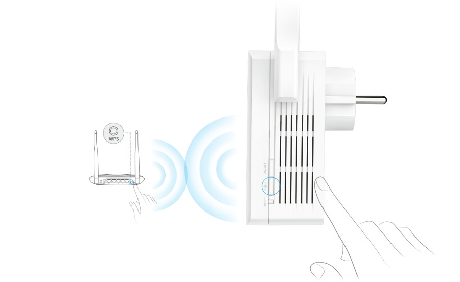 Użytkownicy mogą łatwo zwiększyć zasięg sieci bezprzewodowej, bez użycia żadnych dodatkowych kabli, poprzez umieszczenie urządzenia w zasięgu istniejącej sieci bezprzewodowej. Wystarczy tylko nacisnąć przycisk WPS na routerze, a następnie przycisk Range Extender na wzmacniaczu (w dowolnej kolejności).