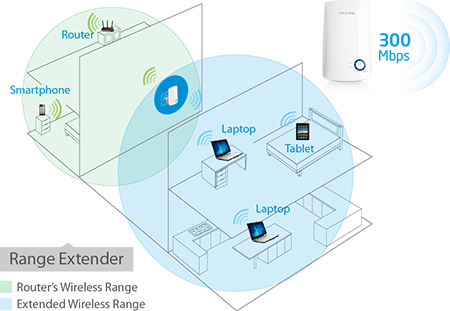 Użytkownicy mogą łatwo zwiększyć zasięg sieci bezprzewodowej, bez użycia żadnych dodatkowych kabli, poprzez umieszczenie urządzenia w zasięgu istniejącej sieci bezprzewodowej. Wystarczy tylko nacisnąć przycisk WPS na routerze a następnie przycisk Range Extender na wzmacniaczu (w dowolnej kolejności).