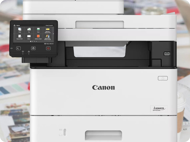 Canon i-SENSYS MF453DW został wyposażony w dotykowy, wbudowany wyświetlacz, który ułatwia obsługę wszystkich funkcji. Łączność przez USB, Wi-Fi oraz LAN zapewnia swobodę pracy w każdej konfiguracji sieciowej. Obsługa AirPrint i Mopria pozwala na szybkie drukowanie z urządzeń mobilnych. Skanowanie bezpośrednio do e-maila lub chmury upraszcza cyfrowy obieg dokumentów. Dodatkowo funkcja druku dokumentów poufnych zwiększa bezpieczeństwo danych i komfort pracy.