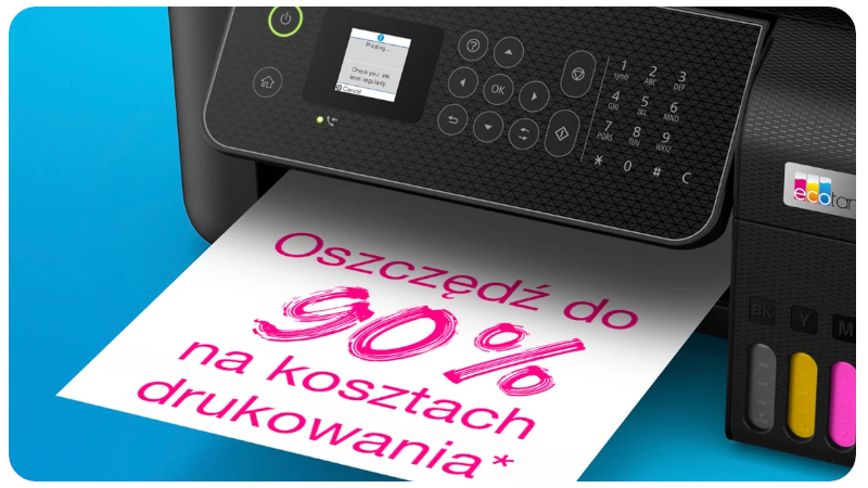 Ta ekonomiczna drukarka to idealne rozwiązanie dla wszystkich, którzy chcą znacząco obniżyć koszty druku — nawet o 90%. W zestawie znajduje się atrament wystarczający na nawet 3 lata użytkowania, co pozwala drukować bez przerwy przez długi czas. Dołączony tusz umożliwia wydrukowanie aż 8 100 stron w czerni oraz 6 500 stron w kolorze, a zamienne butelki z atramentem odpowiadają 66 tradycyjnym kartridżom, co sprawia, że drukowanie staje się wyjątkowo wygodne i oszczędne. To idealny wybór dla domu i małego biura, gdzie liczy się zarówno wydajność, jak i niskie koszty eksploatacji.