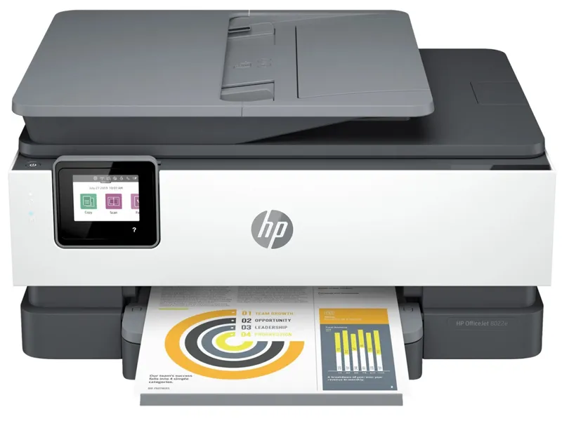 Urządzenie wielofunkcyjne HP OfficeJet 8022e to zaawansowany sprzęt, który pozwala na drukowanie, skanowanie i kopiowanie w jednym kompakcyjnym urządzeniu. Zaprojektowany z myślą o użytkownikach domowych i małych biurach, ten model oferuje wysoką jakość wydruku, wygodne funkcje i łatwą obsługę. HP OfficeJet 8022e oferuje doskonałą jakość wydruku, zarówno w kolorze, jak i czerni. Dzięki technologii atramentowej, drukowane dokumenty i zdjęcia są wyraźne, pełne kolorów i detali. Drukowanie zdjęć w domu staje się łatwe i przyjemne.
