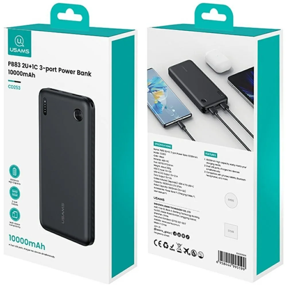 USAMS Powerbank PB83 10000mAh PD 2xUSB-A USB-C czarny