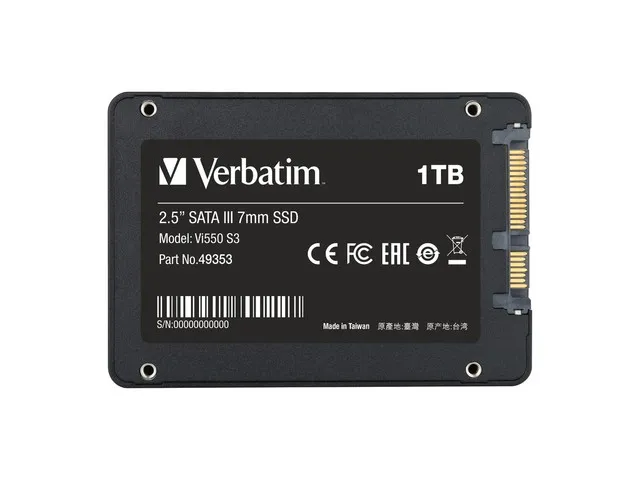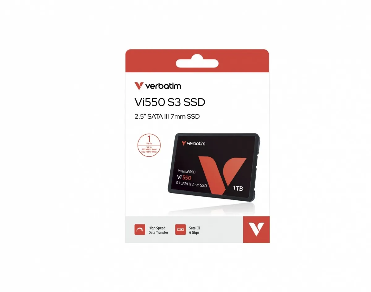 Dyski półprzewodnikowe Verbatim 2,5 cala SATA III 7 mm mogą ożywić działanie systemu. Korzystając z najnowszej technologii 3D NAND, oferują idealny sposób na modernizację systemu opartego na dysku HDD lub starszym dysku SSD. Model Vi550 posiada znacznie lepszy kontroler, co zapewniaj większą trwałość, pojemność i wyższą prędkość zapisu i odczytu.