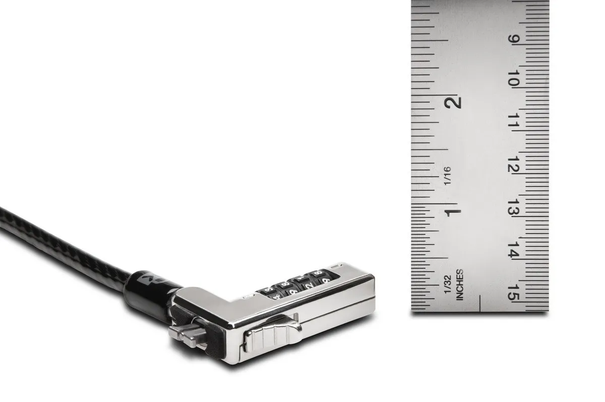W przypadku dzisiejszych smukłych laptopów zmieściłaby się typowa głowica blokady kablowej, ale sam laptop jest tak cienki, że po założeniu blokady nie pozwala laptopowi leżeć płasko, ponieważ grubość blokady jest większa niż laptop, nierównomiernie podnosząc go z powierzchni. Slim Combination Laptop Lock to najmocniejsze bezkluczowe rozwiązanie blokujące, które pozwala ultracienkim laptopom typu 2 w 1 ze standardowymi gniazdami blokady leżeć płasko i stabilnie.