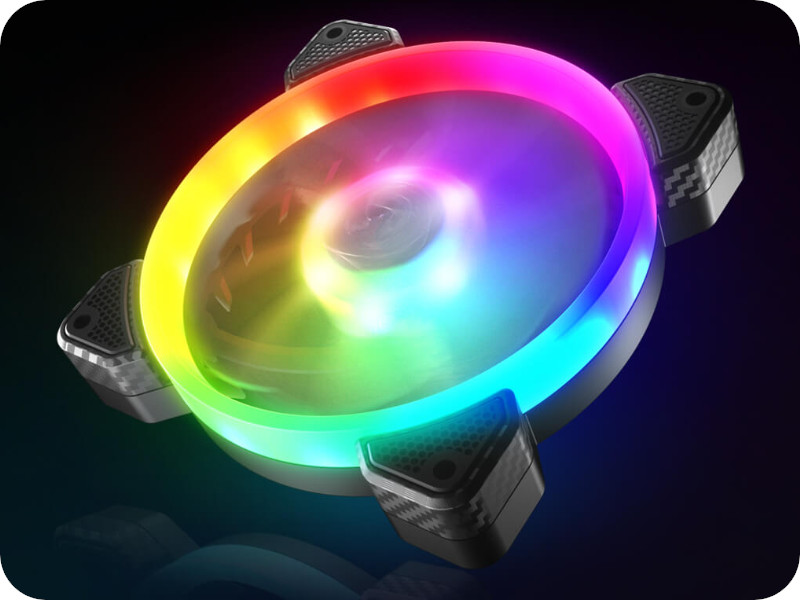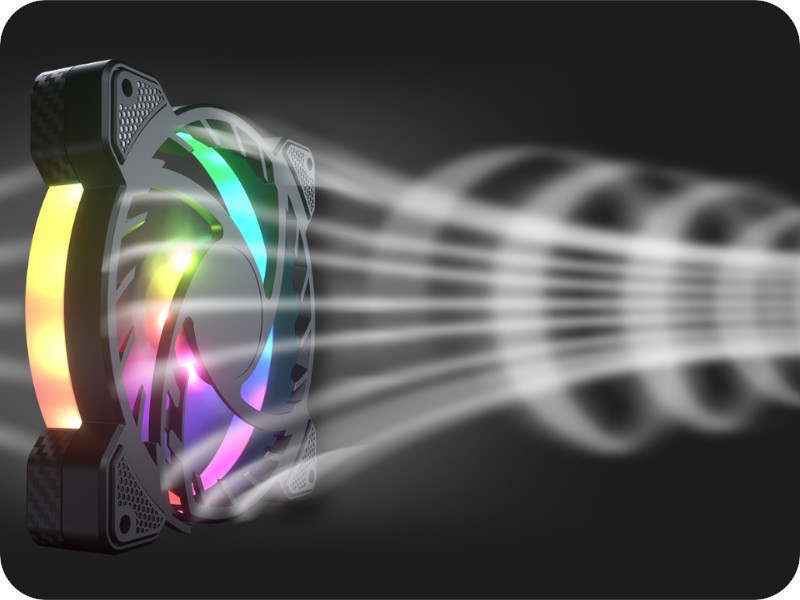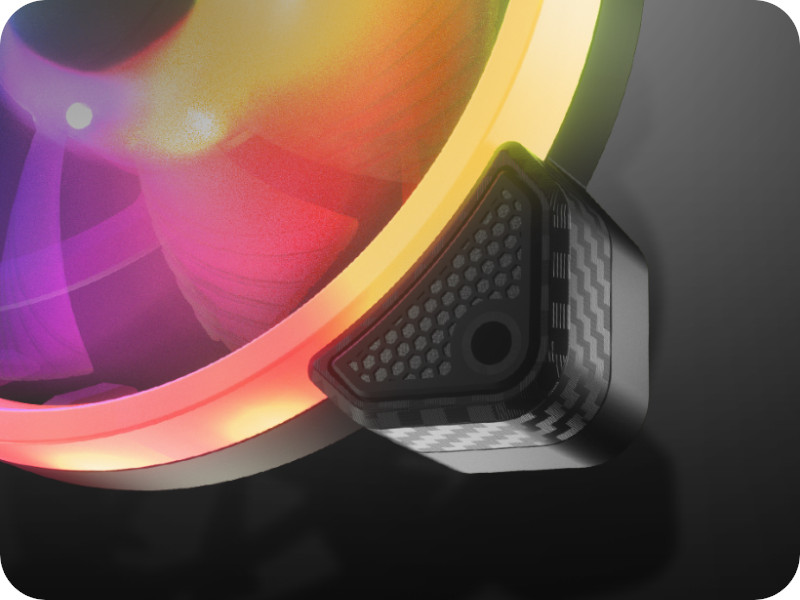 Dzięki kompatybilności z systemem ARGB (5 V, 3-pin) i 24 wbudowanym punktom świetlnym Cougar Vortex VX120 może zapewniać liczne efekty i kolory zarówno na wirniku, jak i na pierścieniu wokół niego. Ciesz się wspaniałym podświetleniem widocznym pod każdym kątem. Podświetlenie możesz personalizować według własnego uznania.