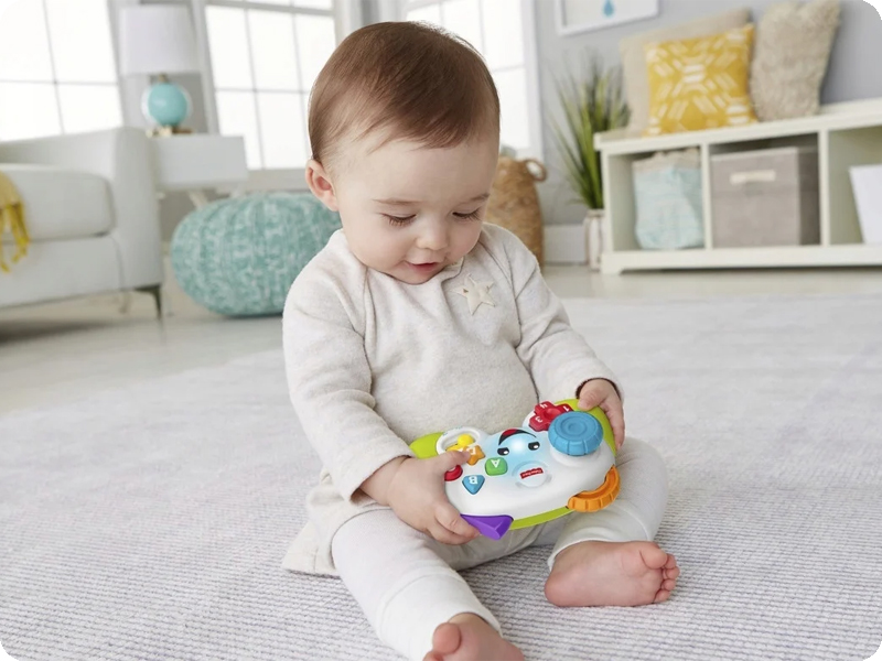 Różne formy oraz kolory przycisków pozwolą stymulować prawidłowy rozwój Twojego dziecka. Kształt oraz rozmiar pada sprawia, że dziecko bez problemu chwyci go w dłoniach i rozpocznie zabawę. Kontroler pobudzi ciekawość i wyobraźnię malucha oraz pozwoli mu rozwinąć zdolności manualne i umiejętność logicznego myślenia.