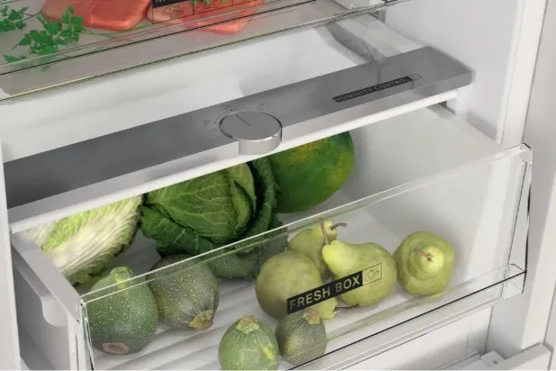 Jednolitą konstrukcję gwarantuje również ekskluzywny system niewidocznych szyn, który jest całkowicie ukryty za drzwiami lodówki.