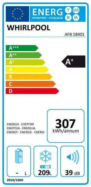 Zamrażarka Whirlpool: kolor biały - AFB 18401 System NoFrost Freeze Control FastFreeze System odpływu wody Wewnętrzne oświetlenie Sterowanie elektroniczne Alarmy/ostrzeżenia |