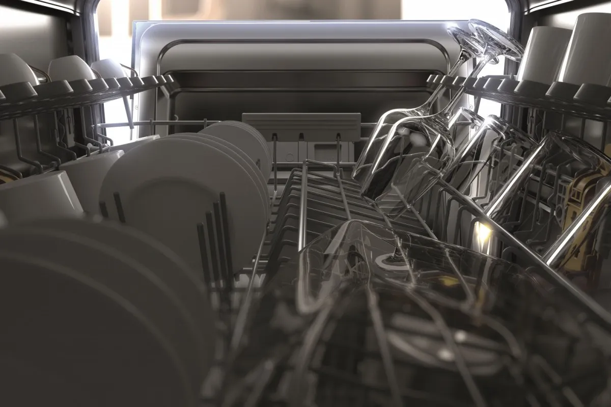 Tyle przestrzeni, ile potrzebujesz. Zmywarka Whirlpool ma 14 uniwersalnych miejsc na naczynia, dzięki czemu zawsze masz tyle przestrzeni, ile potrzebujesz.