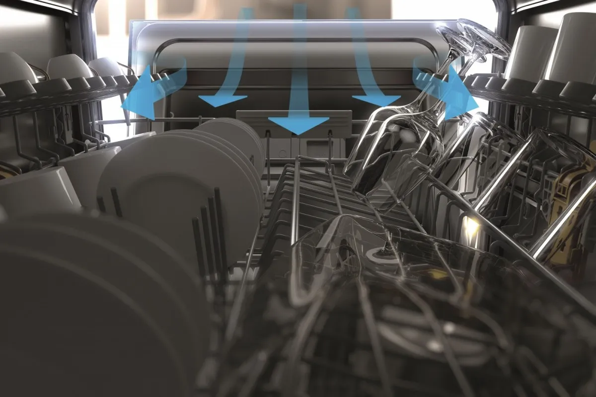 Automatyczne otwieranie drzwi na zakończenie cyklu zapewnia skuteczniejsze i bardziej naturalne suszenie. System gwarantuje wyższą efektywność energetyczną i lepsze rezultaty suszenia.