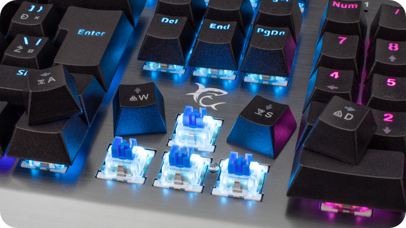 WhiteShark Legionnaire posiada metalową płytę na wierzchu. Element ten nadaje wyjątkowego stylu klawiaturze. Odbijające się na nim podświetlenie LED to niepowtarzalny wygląd, szczególnie podczas nocnych rozgrywek. Kolejną zaletą tego rozwiązania jest wzmocnienie i usztywnienie konstrukcji urządzenia, dzięki czemu masz pewność solidnego wykonania klawiatury.