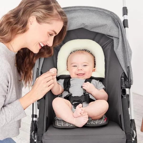 Dzięki innowacyjnej tkaninie, nasza mięciutka wkładka zapewnia noworodkom dodatkowe wsparcie i bezpieczeństwo w nosidełkach i wózkach przez cały rok. Podparcie dla główki wykończone jest miękkim, pluszowym materiałem i pełni funkcję zagłówka. Wkładka jest uniwersalna, pasuje do większości nosidełek i wózków. Świetnie nadaje się również do samochodów, huśtawek oraz leżaczków.