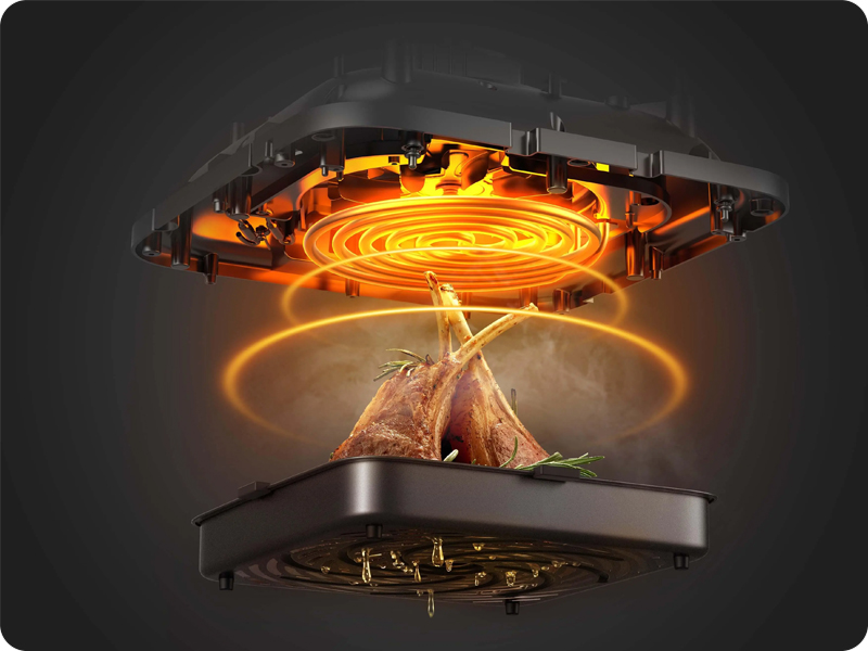 W Xiaomi Smart Air Fryer zaimplementowano zaawansowany system konwekcyjnego ogrzewania 360° dzięki zmodernizowanemu, okrągłemu kanałowi powietrznemu, który eliminuje konieczność obracania jedzenia w trakcie pieczenia. Pozwala to na uzyskanie jednolitej chrupkości zewnętrznej oraz miękkości wewnętrznej potrawy. Dwie warstwy powłoki nieprzywierającej PTFE chronią przed przypaleniem i ułatwiają czyszczenie.