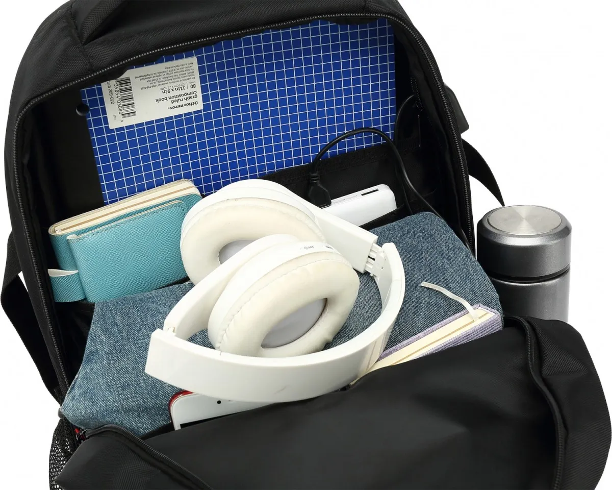 - Dzięki umieszczonemu z boku i dobrze dostępnemu portowi USB, które można podłączyć do Power Banku w kieszenie wewnętrznej, plecak jest świetnym rozwiązaniem dla tych, którzy często muszą ładować telefon w podróży lub po prostu chcą mieć łatwy dostęp do źródła zasilania zawsze i wszędzie.