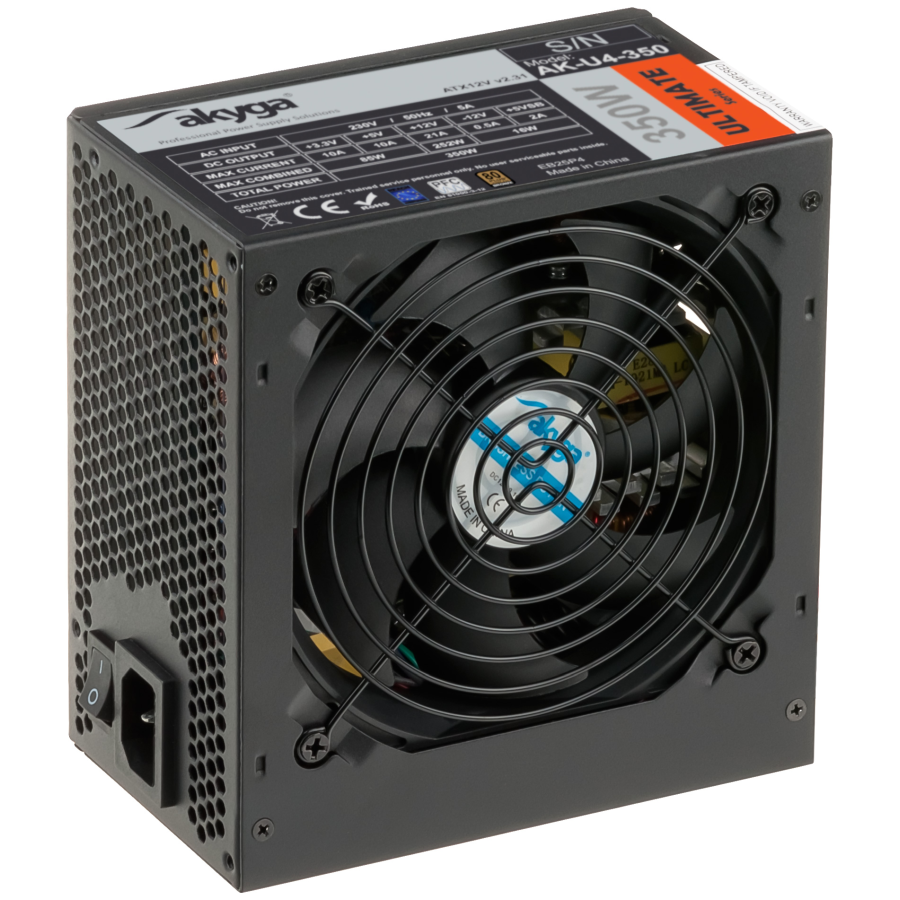 Zasilacz został wyposażony w układ PFC oraz szereg zabezpieczeń zapewniających bezpieczeństwo pracy zarówno samego produktu jak i zasilanych komponentów. Zasilacz ATX AK-U4-350 to wysokiej jakości produkt spełniający bieżące wymogi i odpowiadający nowoczesnym standardom. W zestawie wraz z zasilaczem znajduje się kabel zasilający o długości 1,5m.