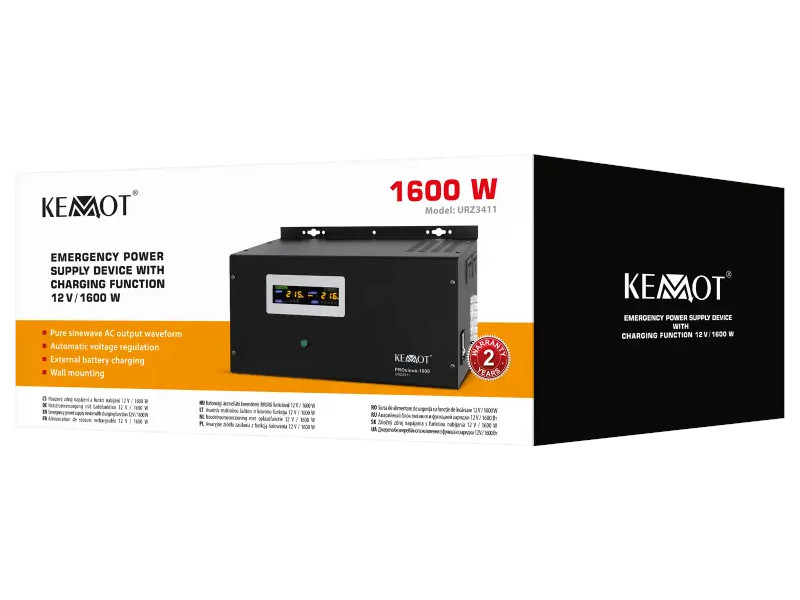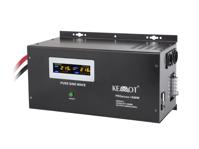 Zasilacz awaryjny KEMOT to urządzenie mające na celu podtrzymać zasilanie w podłączonych do niego sprzętach w przypadku awarii sieci energetycznej. Zastosowanie znajdzie w serwerowniach i biurach, a także w domach prywatnych. Przetwornica KEMOT z czystym przebiegiem sinusoidalnym przeznaczona jest do awaryjnego zasilania takich urządzeń jak piec centralnego ogrzewania, pompy ciepła, telewizor, lodówka, itp. Urządzenie KEMOT może pracować nie tylko w trybie zasilacza awaryjnego, lecz także jako prostownik doładowujący akumulator zewnętrzny, oraz przetwornica.