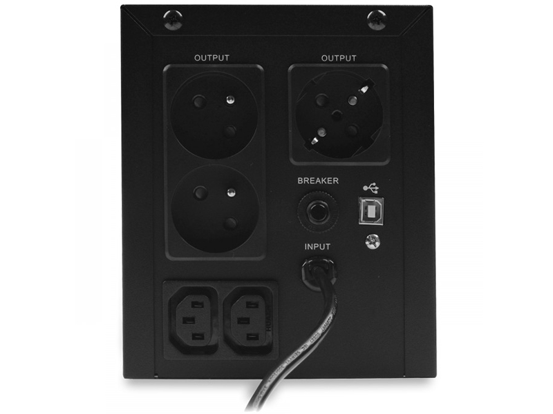 Wbudowany wyświetlacz Kompaktowa obudowa i mała waga urządzenia Technologia Line-Interactive UPSILON Stabilizator napięcia AVR Niezawodny i wydajny mikroprocesorowy układ sterowania Możliwość uruchomienia zasilacza bez podłączenia do sieci AC Ekologiczna funkcja automatycznego oszczędzania energii |