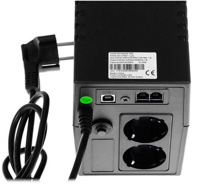 Zasilacz awaryjny UPS Green Cell Micropower z wyświetlaczem LCD 600VA