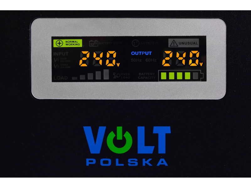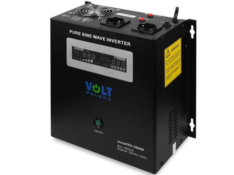 Zasilacz awaryjny Volt Polska SINUS PRO 2500 W jest urządzeniem do bezprzerwowego zasilania m.in.: instalacji centralnego ogrzewania (piece CO, pompy, sterowniki, podajniki etc.), komputerów, serwerów, zestawów komputerowych, bram automatycznych, urządzeń automatyki, elektronarzędzi itp. W przypadku zaniku napięcia sieciowego 230VAC, urządzenie przełącza się w tryb pracy akumulatorowej pozwalając na dalsze bezprzerwowe działanie systemu i zabezpieczając przed uszkodzeniem instalacji, bezpowrotną utratą danych.