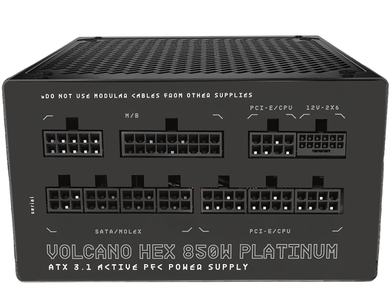 MODECOM Volcano Hex 850W Platinum ATX 3.1 to zaawansowany zasilacz stworzony z myślą o wymagających zestawach gamingowych. Moc 850 W w połączeniu z certyfikatem Cybenetics Platinum gwarantuje wysoką sprawność, stabilne napięcia i niezawodną pracę nawet pod dużym obciążeniem. To idealny wybór dla graczy i entuzjastów, którzy oczekują najwyższej jakości, bezpieczeństwa oraz pełnej kontroli nad wydajnością swojego komputera.