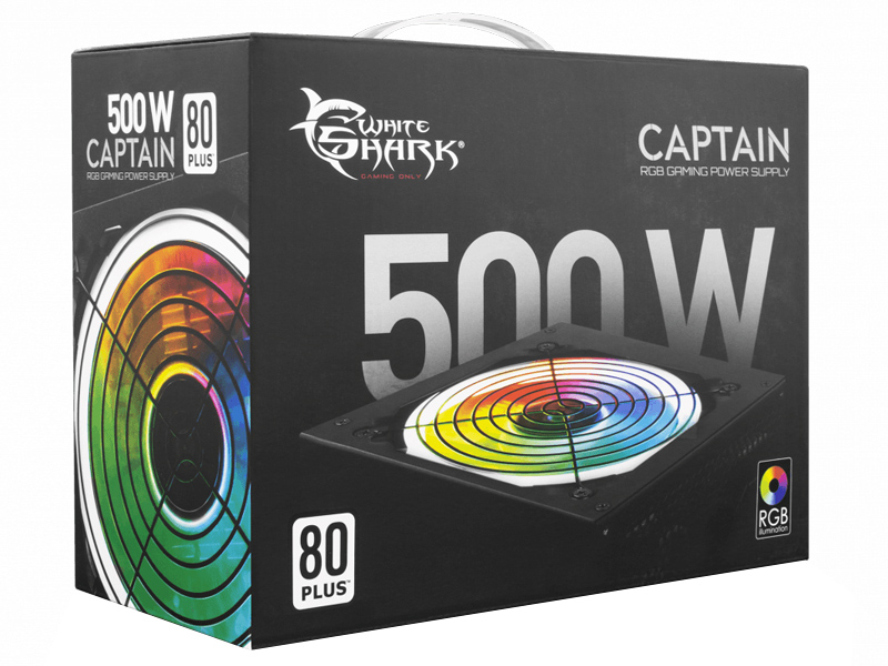 Zasilacz komputerowy WhiteShark typu ATX, o mocy 500W, wyposażony w podświetlenie RGB w gamingowym stylu. Jego wydajność została potwierdzona certyfikatem 80 PLUS. Zasilacz dostosowuje się do panującego w danym momencie obciążenia oraz warunków wykorzystywanej sieci elektrycznej dzięki zastosowaniu aktywnego PFC. Ponadto, zasilacz posiada wbudowany wentylator o średnicy 120 mm na łożysku hydraulicznym z podświetlaniem RGB.