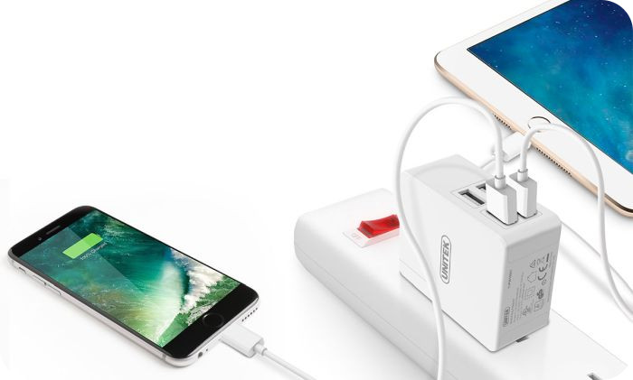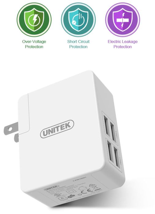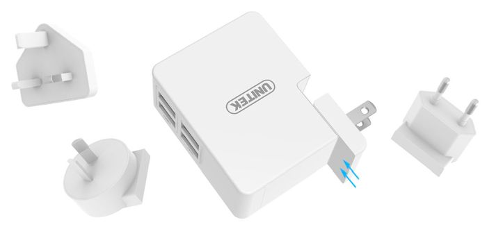 Unitek zadbał o bezpieczeństwo wyposażając ładowarkę w szereg zabezpieczeń: przed przeładowaniem, przed zwarciem i przed przegrzaniem. Możemy ją stosować do wszystkich urządzeń zasilanych z portu USB. Wymienne wtyczki wymienia się szybko i prosto.