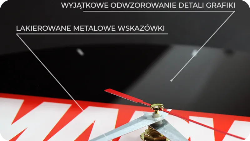 Matowa powierzchnia tarczy zegara, intensywne kolory i idealne odwzorowanie detali. Grafika została dodatkowo utrwalona najnowszą, specjalistyczną technologią, która gwarantuje jej maksymalną trwałość.