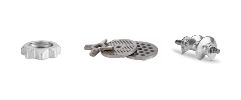 W skład zestawu wchodzi komplet akcesoriów, które usprawnią przetwarzanie produktów. Dołączono 2 sitka z otworami 7mm oraz 3mm, dzięki którym zmielisz mięso dokładnie tak, jak tego potrzebujesz. Do tego w zestawie znajdują się dwustronny nóż, taca zasypowa, popychacz. Antypoślizgowe nóżki ułatwiają pracę i podnoszą bezpieczeństwo korzystania z urządzenia.