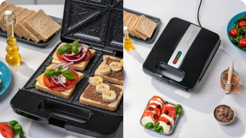 Znudziły Ci się klasyczne kanapki? Czas na urozmaicenie! Nowoczesny opiekacz dla miłośników pysznych, ciepłych kanapek z zapiekanym nadzieniem. Za sprawą dużej mocy 1400 W przygotuje apetyczną przekąskę już w kilka chwil. Dodatkowo, opiekacz został wyposażony w zapobiegające przywieraniu powłokę, więc masz pewność, że nie będziesz tracić czasu na żmudne czyszczenie.