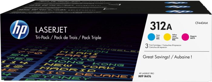 Zestaw 3 oryginalnych wkładów z niebieskim/purpurowym/żółtym tonerem HP 312A LaserJet