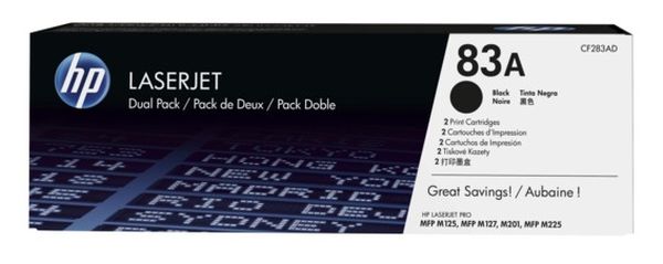 Zestaw dwóch oryginalnych wkładów laserowych HP 83A LaserJet, czarny CF283AD