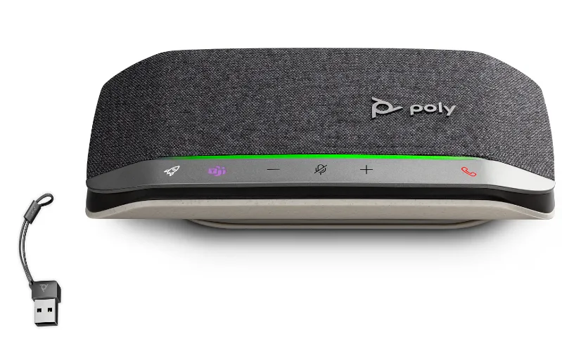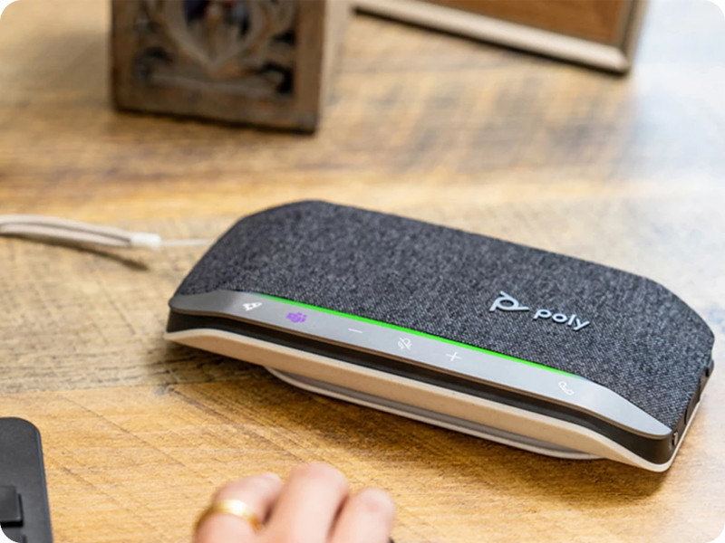 Poly Sync 20+M to głośnik z dźwiękiem o jakości sali konferencyjnej, który można zabrać w drogę. Pozwala cieszyć się niezwykłym dźwiękiem podczas spotkań i słuchania muzyki. Urządzenie gwarantuje redukcję echa i hałasu, dzięki któremu będzie wyraźnie słychać użytkownika.