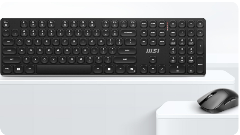 Peryferia i eksploatacjaKlawiaturyZestaw Klawiatura + mysz bezprzewodowa MSI Forge K210 Combo US
