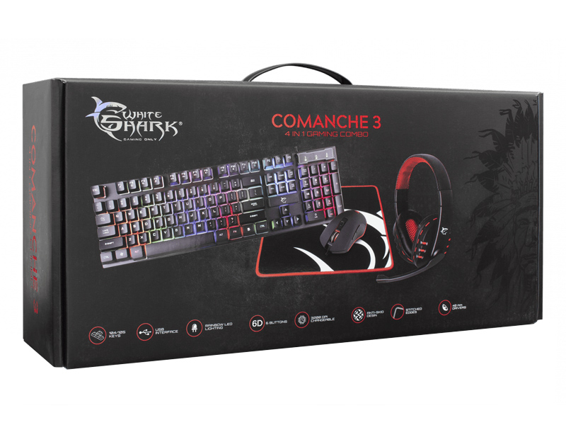 Zestaw klawiatura, mysz, słuchawki, podkładka WhiteShark Comanche 3