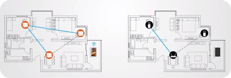 W tradycyjnych zestawach sieciowych, po utracie połączenia między urządzeniami (PowerLine, wzmacniaczami), również Ty tracisz połączenie z siecią. W systemach Tenda nova utrata połączenia między dwoma węzłami, nie powoduje odłączenia od sieci. Router po prostu połączy się z innym dostępnym routerem, abyś zawsze był online.
