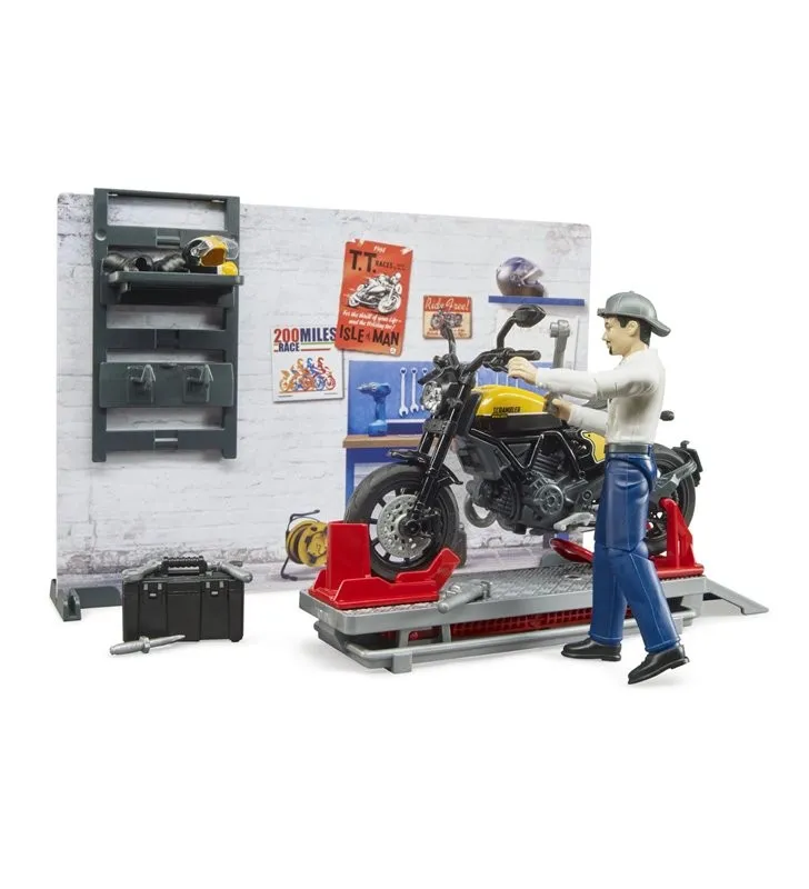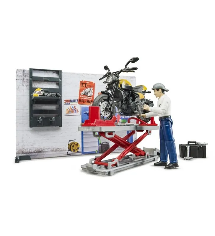 Zestaw Warsztat naprawy motocykli z Ducati i figurką