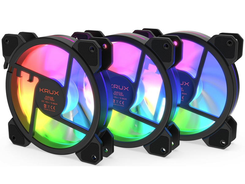 Wentylatory posiadają specjalny, opływowy kształt dziewięciu łopatek o zwiększonej grubości, który pozwala zredukować powstające turbulencje do minimum, dzięki czemu KRUX Lunar ARGB pracuje cicho i stabilnie. Solidne łożysko zapewnia długą i niezawodną pracę wentylatorów, a gumowe elementy na narożnikach redukują przenoszenie wibracji na obudowę.