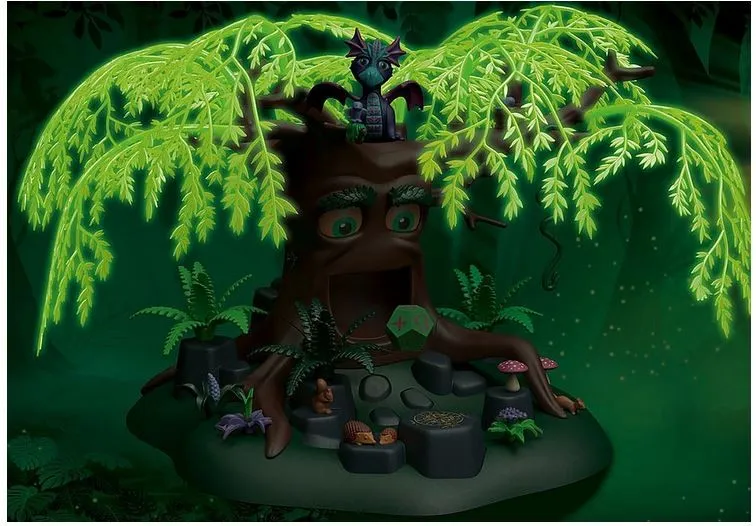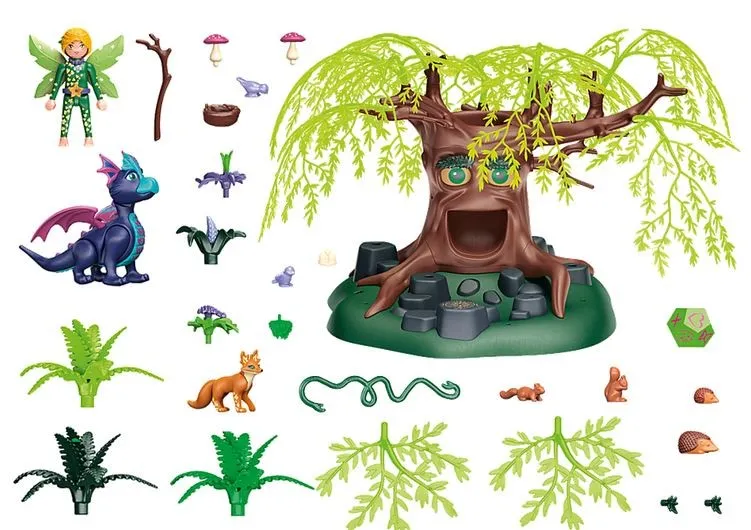 Bajkowe, stare drzewo mądrości od lat służy wróżkom swoimi radami. Przekazuje je jako zagadki na kostce, która wypada z jego ust. Na każdej z 12 ścianek kostki znajdują się symbole sugerujące odpowiedź. Wśród gałęzi drzewa, które świecą w ciemności, mieszka mały smok.